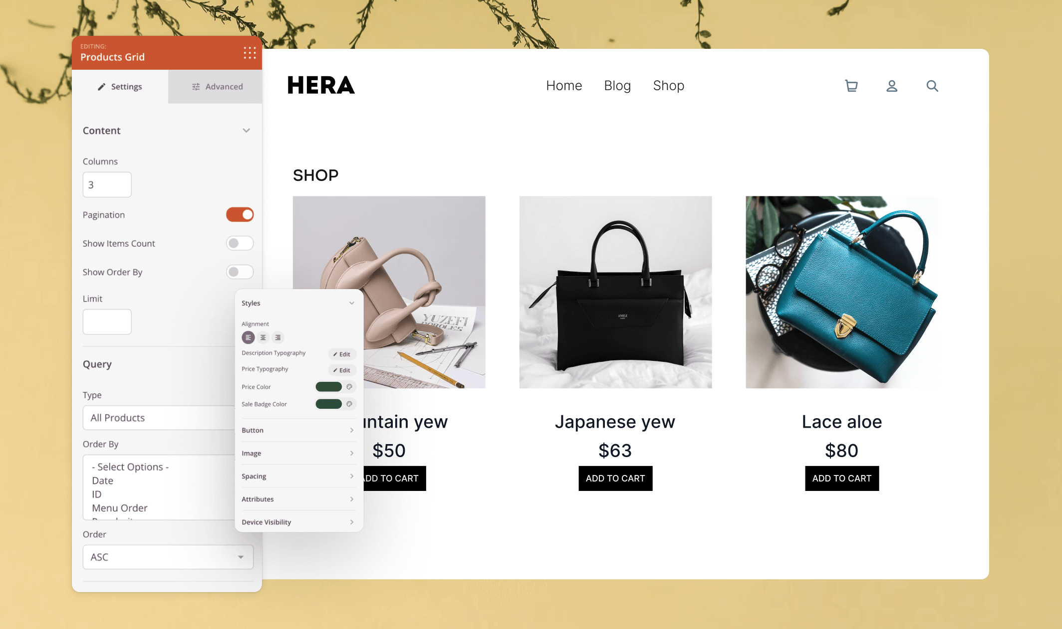 Create important shop pages and customize them visually with our live drag-and-drop editor.