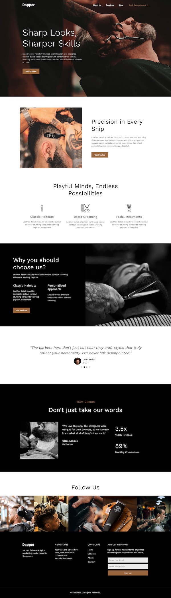 Our free landing page templates and custom website designs allow you to combine our user-friendly landing page blocks to create the perfect page for your marketing campaign. You can also use our page sections, like headers, footers, FAQs, etc., to add pre-made sections to your page without building them block by block.
