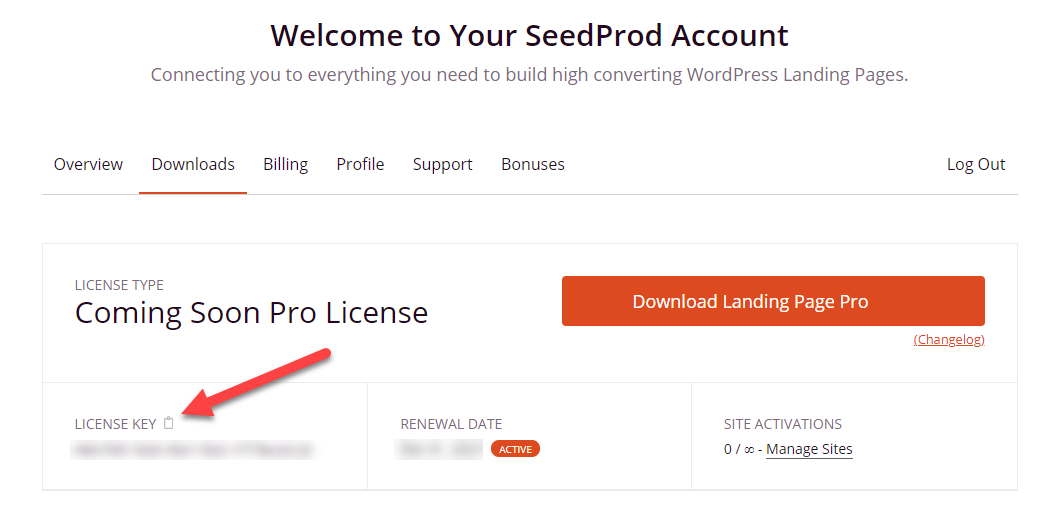 - Download the SeedProd Landing Page Pro plugin from your member dashboard area. If you do not have a SeedProd account, you can get SeedProd Pro to create one.