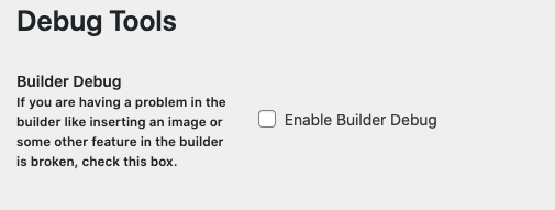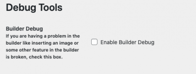 If you are having a problem with the builder (such as can’t insert an image or other features in the builder is broken/not working), you can try using the builder in debug mode. To enable this mode within your WP admin dashboard, follow these quick steps below: