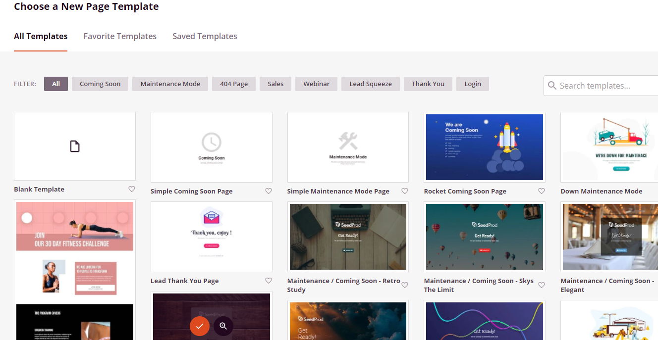 SeedProd comes with four special landing pages and modes and for you to use.
